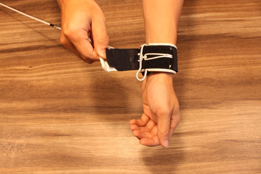 手腕部分魔鬼氈插銷設計,緊急時快速脫困。