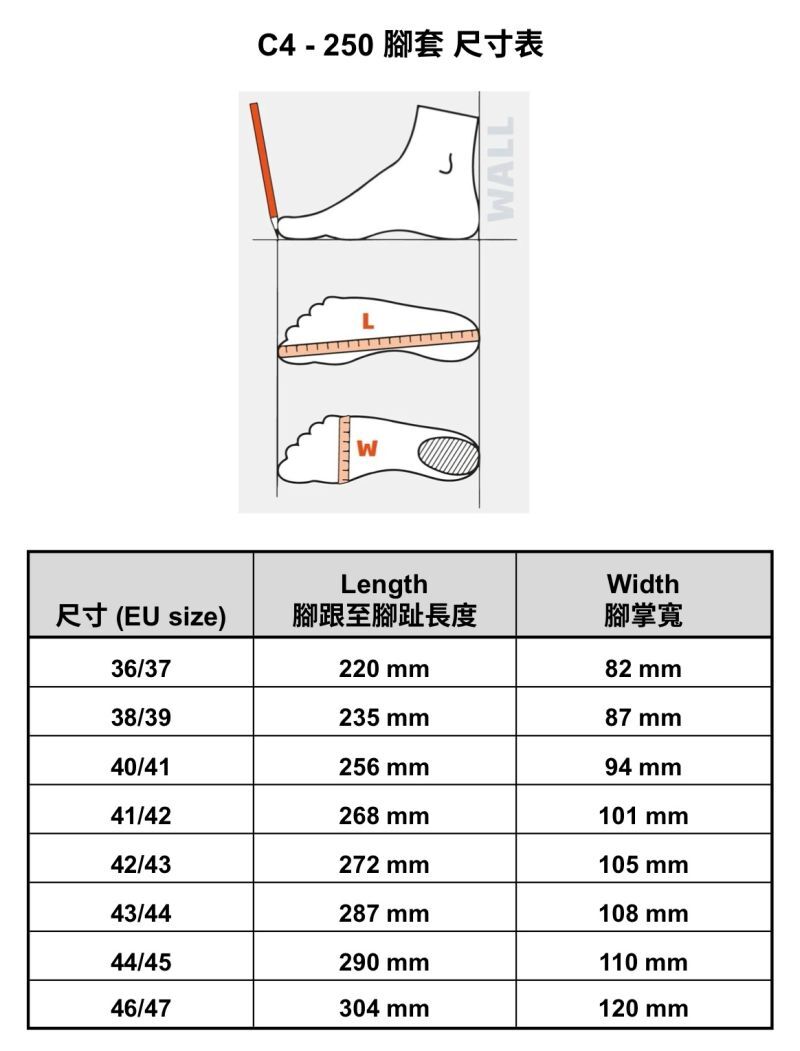 -重量:250 克/單支 (以尺寸 41 / 42為例)