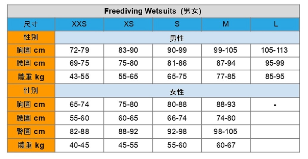 3mm 氯丁橡膠兩件式自潛防寒衣,分男女兩款。