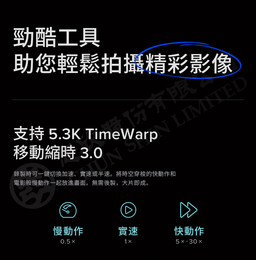-電池效率提升 5.3K/60持續拍攝70分鐘