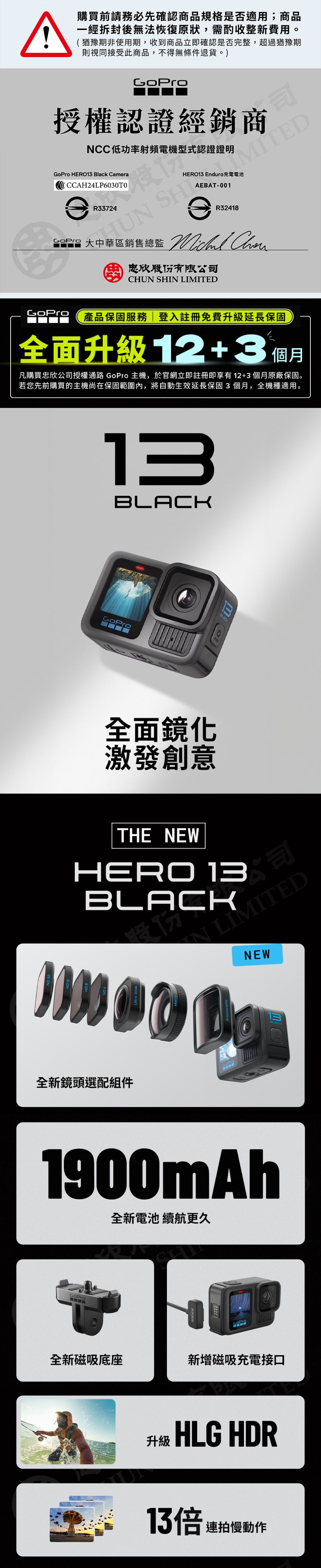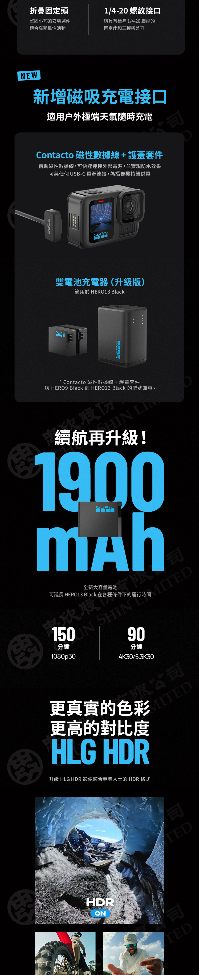 -1900mAh高容量 Enduro 電池,續航行更持久,5.3K/30持續拍攝90分鐘