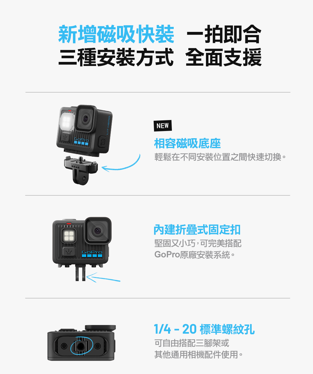 -與超過35種GoPro固定座+配件相容