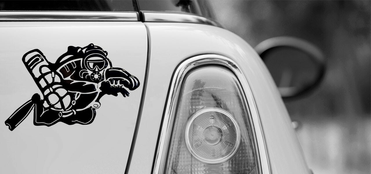 HOBBY LABELS 立體個性貼紙 - W01.027 側掛潛水達人(銀色款) 防水/戶外/車貼