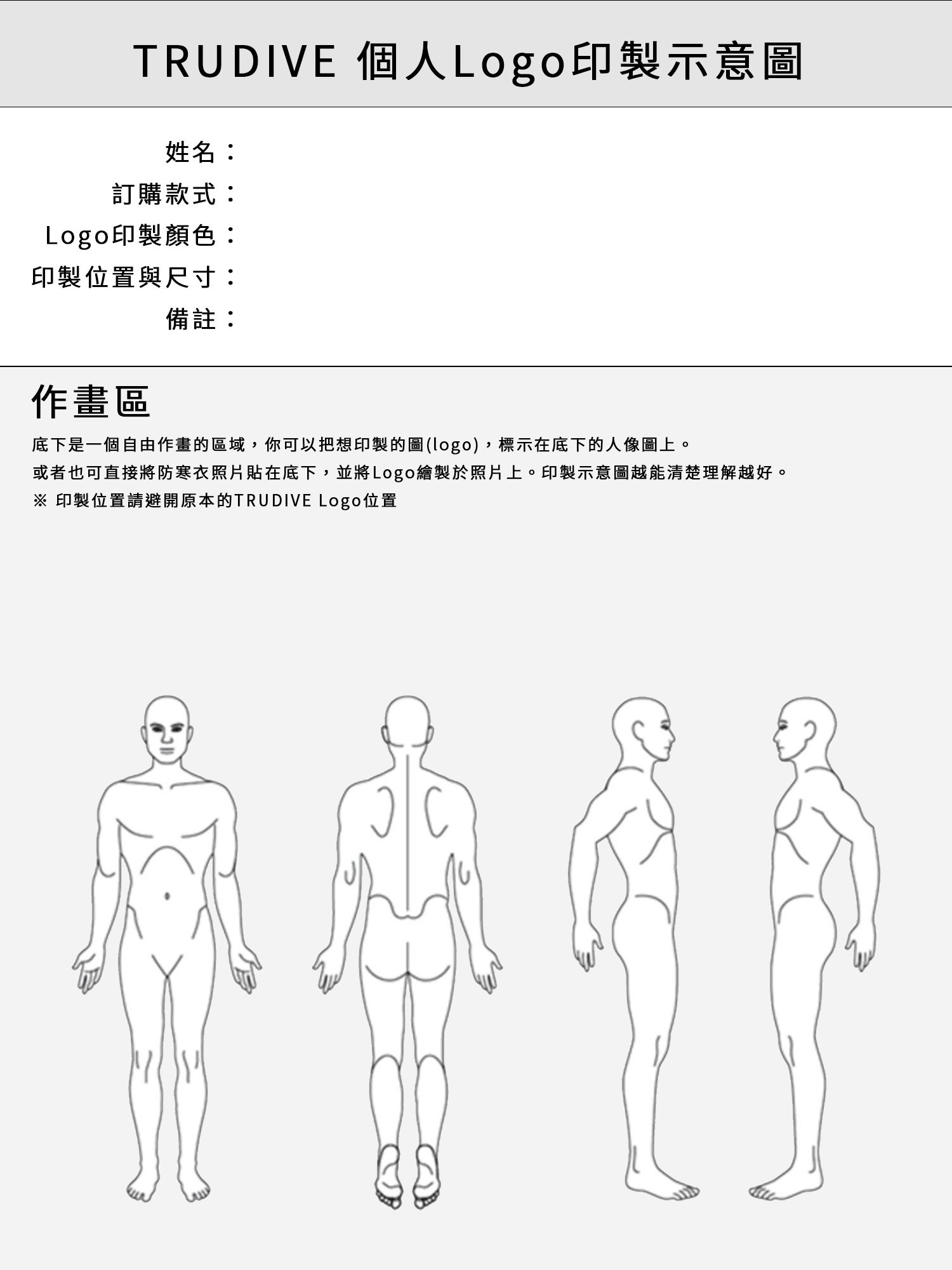 -此商品為TRUDIVE防寒衣加購商品,僅可印製於原本TRUDIVE logo以外的地方